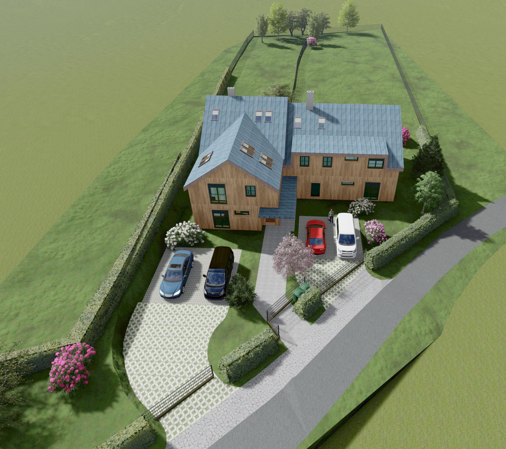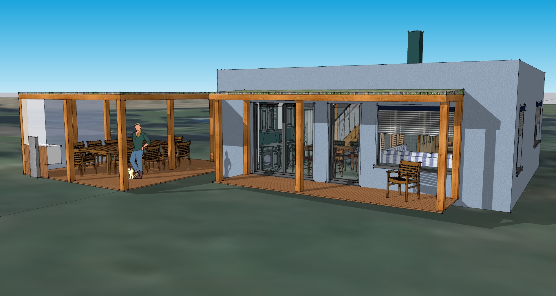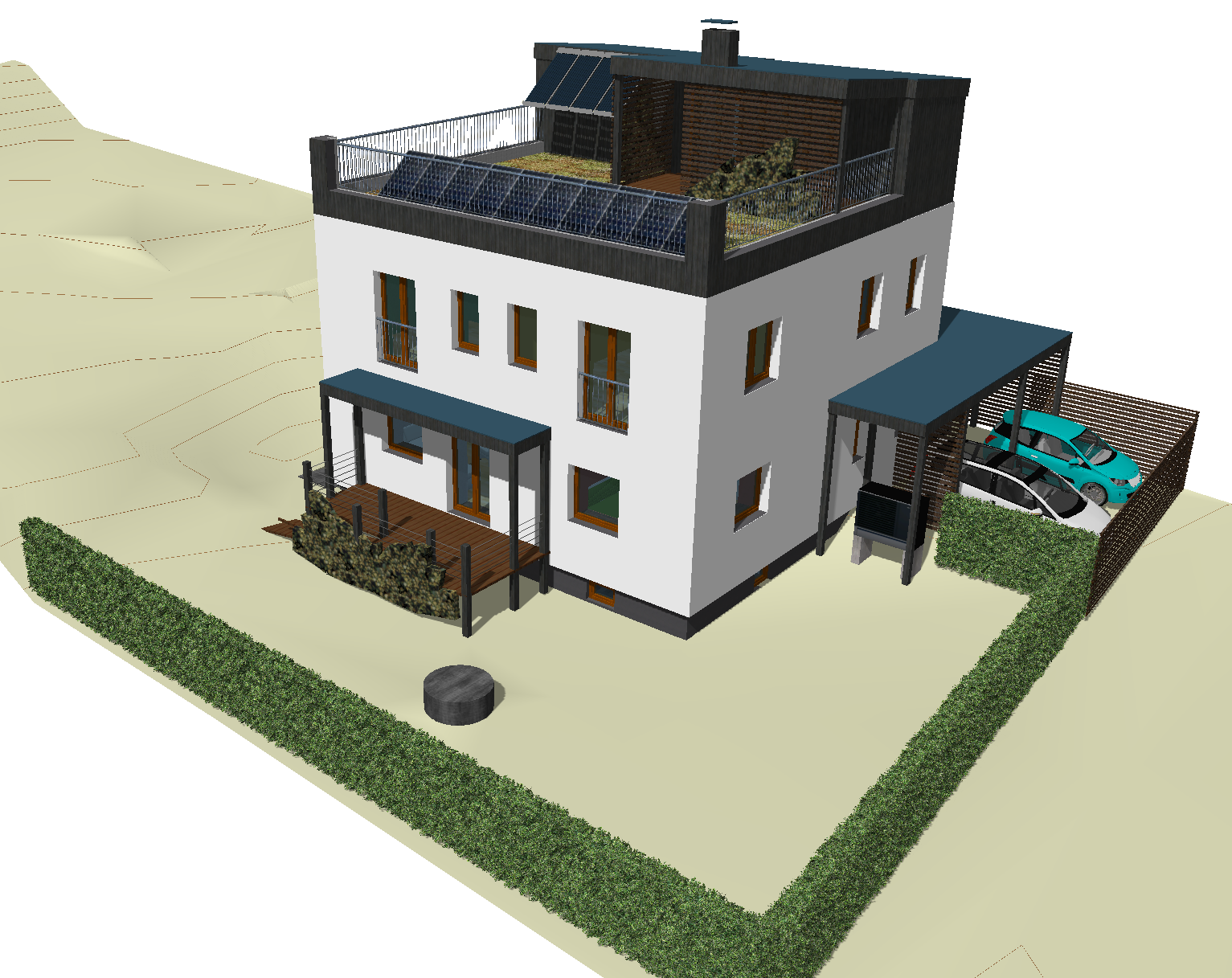 Terénní úpravy, zemní registr, zelené střechy RD, pasivní i aktivní sluneční zisky